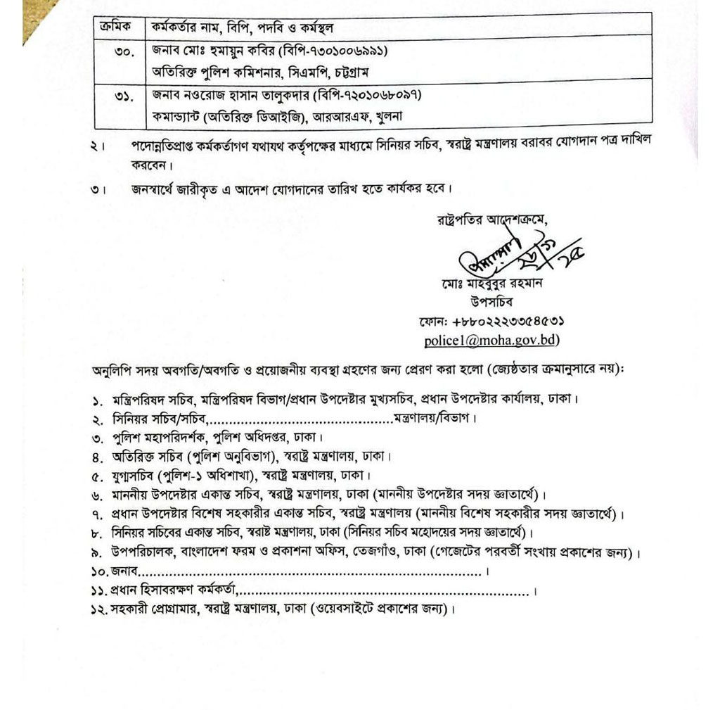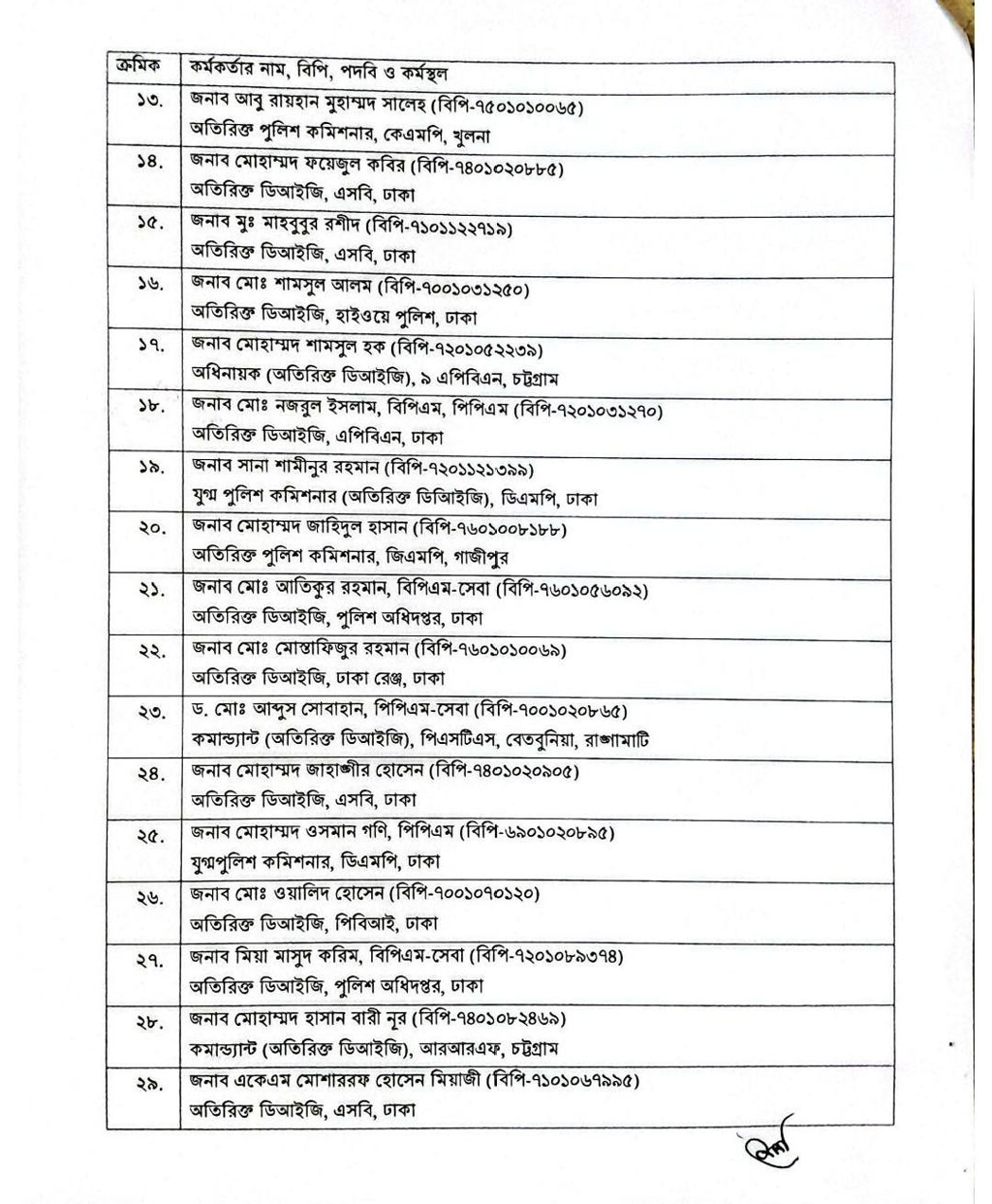 এদিন আলাদা তিনটি প্রজ্ঞাপনে লটারির মাধ্যমে ৬৪ জেলায় পুলিশ সুপার বদলি ছাড়াও রাজশাহী পুলিশ কমিশনার পদে রদবদল ও ১৩ পুলিশ সুপারকে পুলিশের বিভিন্ন ইউনিটে বদলি করা হয়।