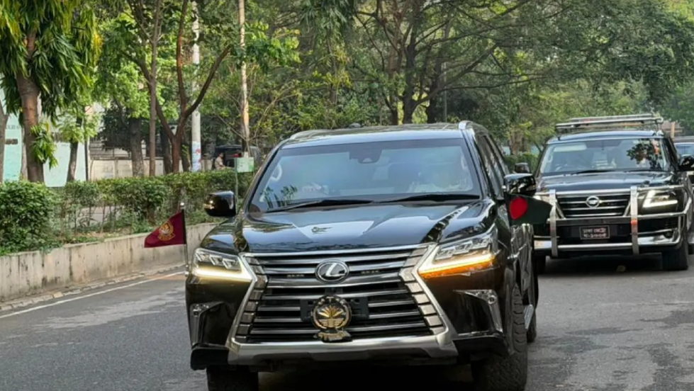 প্রথমবারের মতো রাষ্ট্রীয় গাড়ি ও জাতীয় পতাকা ব্যবহার করলেন প্রধানমন্ত্রী তারেক রহমান
